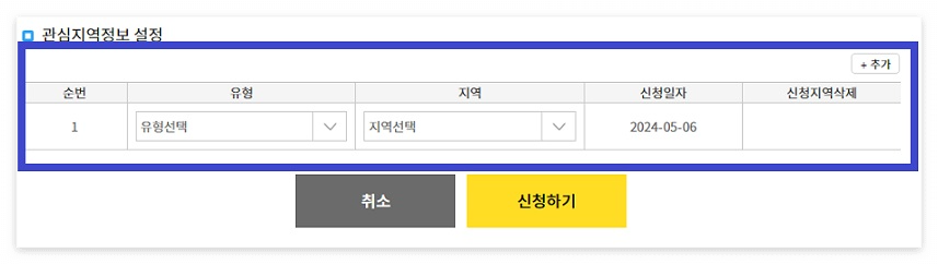 → 지역은 원하시는 지역을 선택 후 신청하기를 누르면 청약 알림 설정이 완료됩니다.