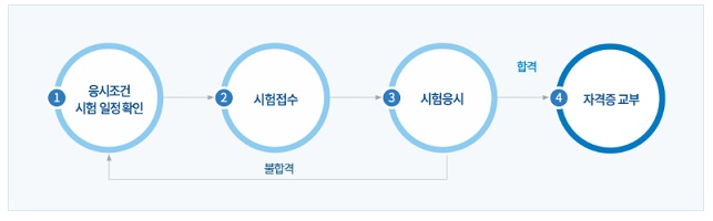 ✅ 화물운송 자격증의 시험절차는 아래와 같이 응시조건과 일정을 확인하여 시험을 접수하고 응시 후 자격증을 교부받으면 화물운송 자격증 취득이 완료됩니다.